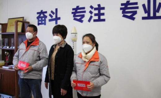 隨後,劉麗華主席代表“雙聯”創新企業各後盾單位向公司勞動模範、創新能手、困難員工發放了慰問金,並提前向他們致以新春的問候和祝福。劉麗華主席代表“雙聯”創新企業各後盾單位向公司勞動模範、創新能手、困難員工表示慰問,並和他們親切合影。